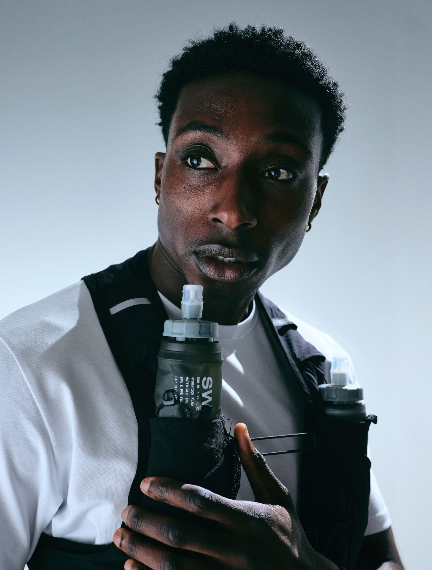 The vest comes with an optional two 500ml soft flasks included. Both options are available for selection above